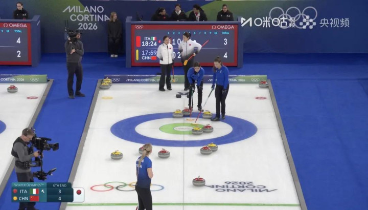 2月12日,米兰冬奥冰壶比赛,中国女队对战英国