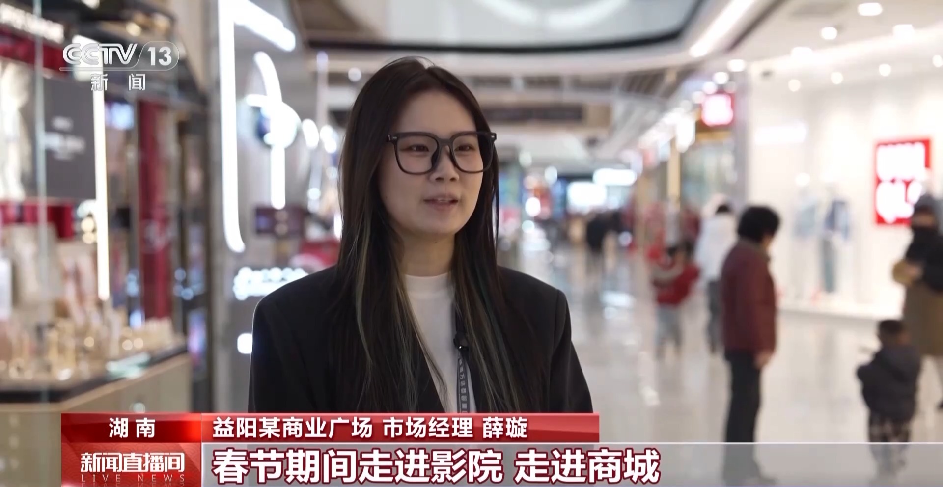 益阳某商业广场 市场经理 薛璇:春节期间,我们整个商场将发放超过5000份礼品,同时包括满额赠、满额抽和购物立减等消费活动,引导更多群众春节期间走进影院、走进商城,进一步刺激消费市场的活力。