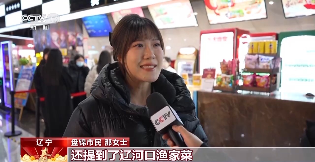 盘锦市民 那女士:电影前面的非遗短片里面,还提到了辽河口渔家菜,看着就特别好吃,然后正好拿着这个票根还能有优惠活动,还有赠送的菜品,就想赶紧一会儿和家人去尝一尝。