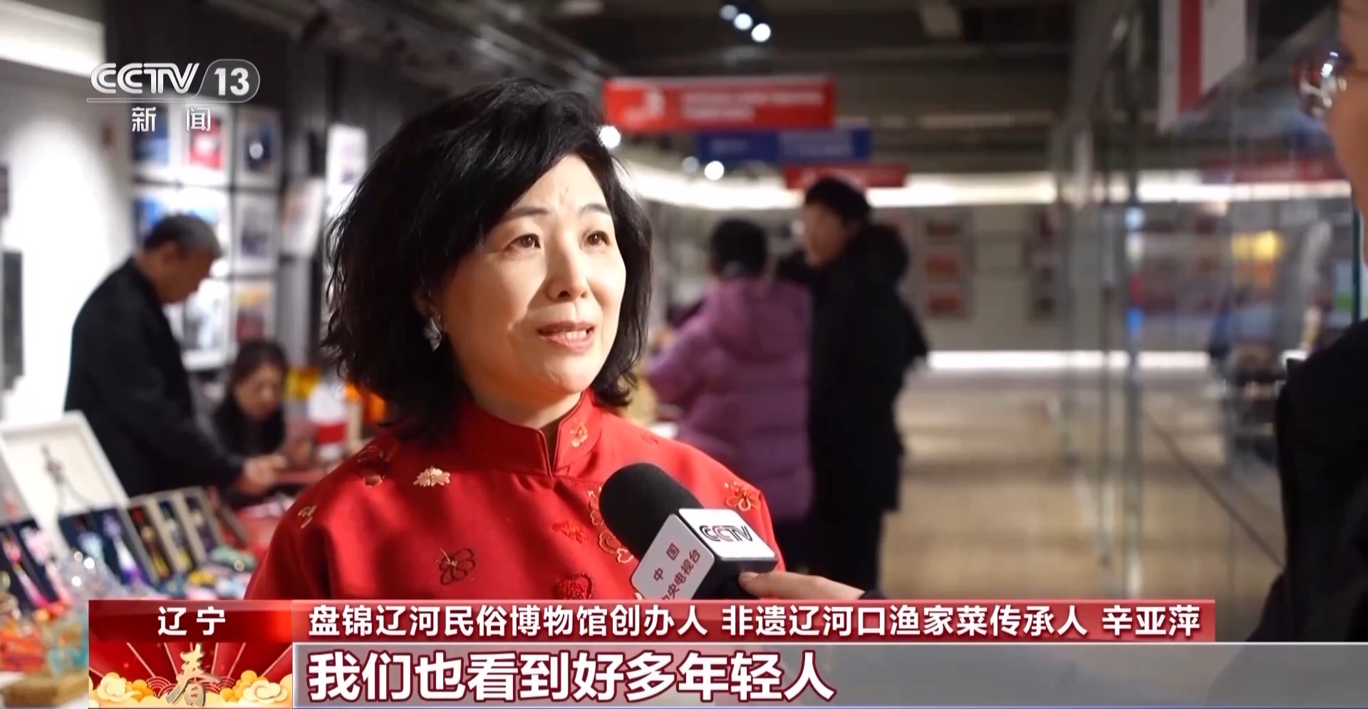 盘锦辽河民俗博物馆创办人 非遗辽河口渔家菜传承人 辛亚萍:通过“跟着电影赏非遗”这个活动,给我们博物馆带来了非常大的流量,较比以往我们多了将近四成流量。我们也看到好多年轻人,他们愿意跟着非遗传承人去学习、去感受,也以这样的一种形式来表达对家乡的喜爱,对中国年的祝福和热爱。
