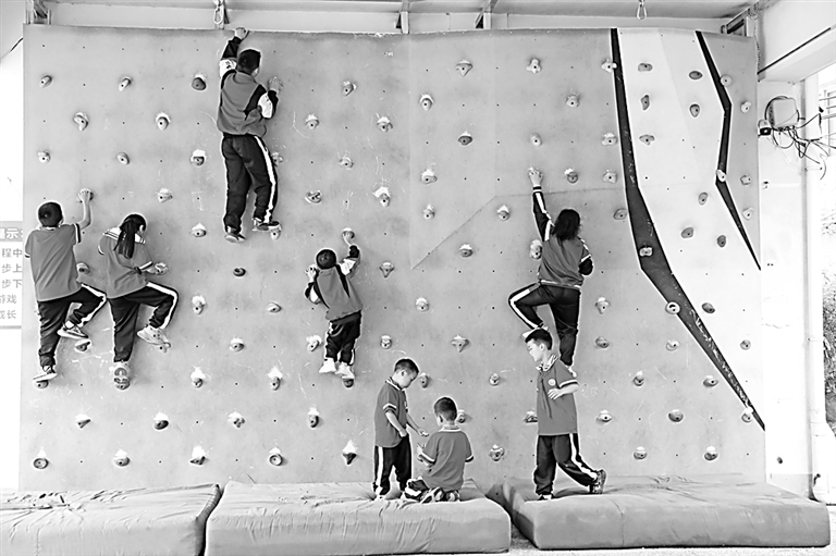 贵州省黄平县新州镇第二小学学生在攀岩。新华社发