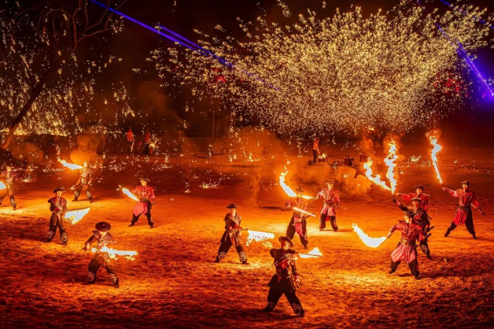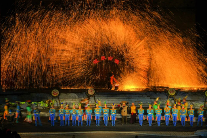 2025年1月,河北唐山河头老街,《唐王东征》实景演出首演,将打铁花化为沙场烽烟,与战马嘶鸣、将士呐喊交织,再现唐王李世民东征高句丽的史诗场景,单场最多吸引5000名观众,被赞誉为“一生必看的演出”。